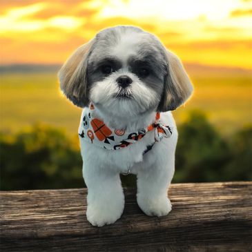 Spa bath with all-natural shampoo and conditioner, brush out, blow dry, clean/pluck ears, cut/dremel nails, full body hair cut and style, hand scissor finish, bandana or bow, cologne.